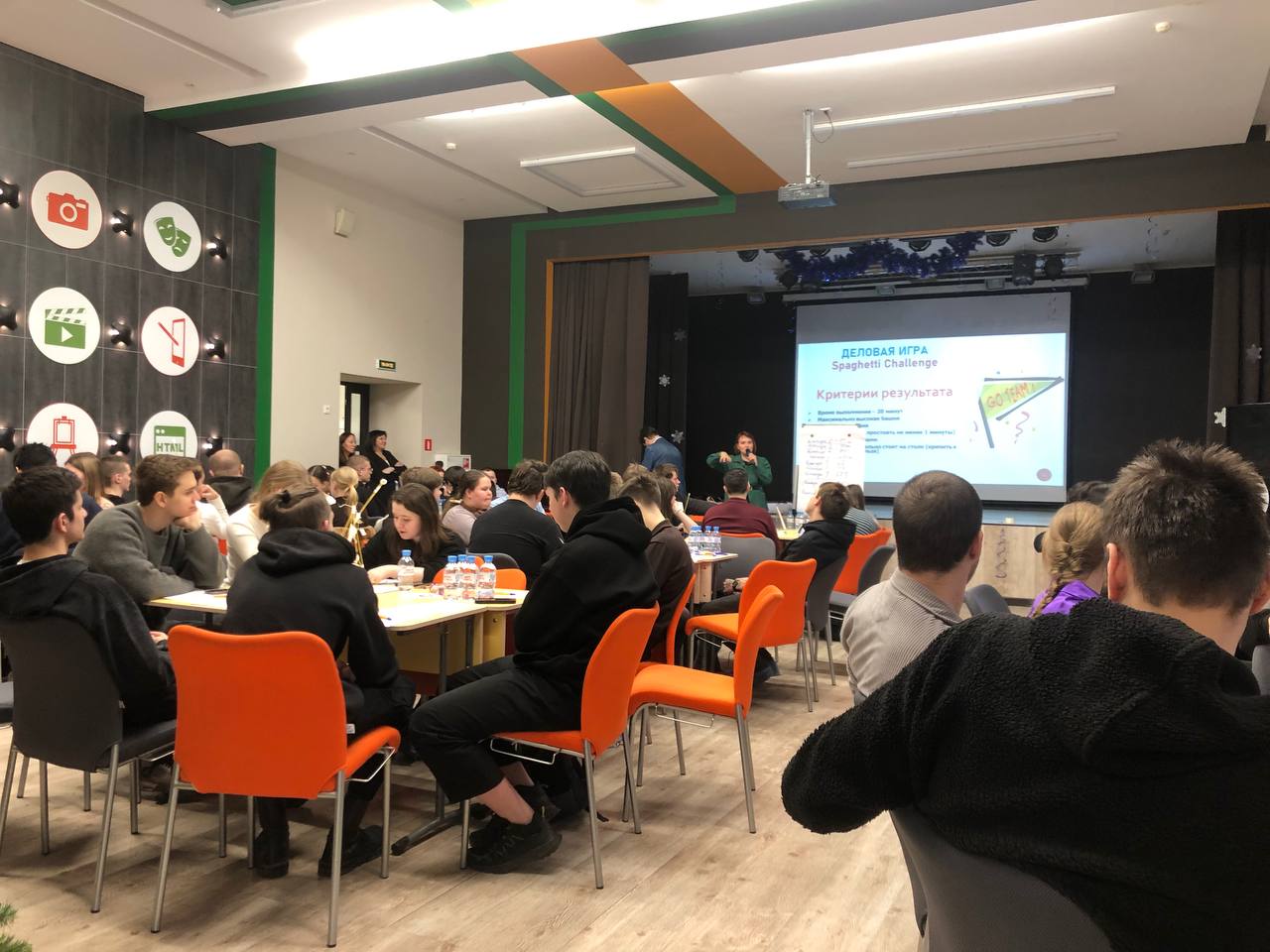 Для знакомства участников было выбрано креативное задание — создание визитных карточек, которые описывали бы их с помощью ассоциативных изображений. Это одна из множества задач тренинга, направленных на сближение команды. Другим упражнением, нацеленным на развитие креативности и инициативности, стала игра «Spaghetti Challenge»: её суть заключалась в том, чтобы за отведённые 20 минут построить максимально высокую и устойчивую башню из выделенных материалов (макарон, скотча и ниток). Это упражнение развивало коммуникабельность, нестандартное мышление и творческий подход к решению задач.
