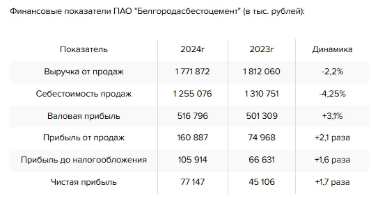 Белгородский завод «Ураласбеста» увеличил в 2024 году чистую прибыль в 1,7 раза