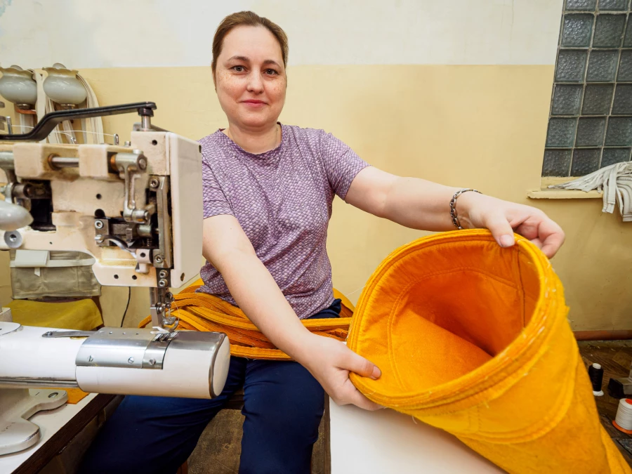 Для пошива рукавов используется войлочный полиимид – высокопроизводительный фильтрующий материал. Данная ткань способна выдерживать температуру до 250 градусов и обеспечивает высокую эффективность очистки (до 99,7 процентов). Она надежно вырабатывает свой гарантийный срок, отличается хорошей механической прочностью, стойкостью к истиранию и химической стабильностью. Ткань отлично зарекомендовала себя в промышленной очистке дымовых газов и их фильтрации.