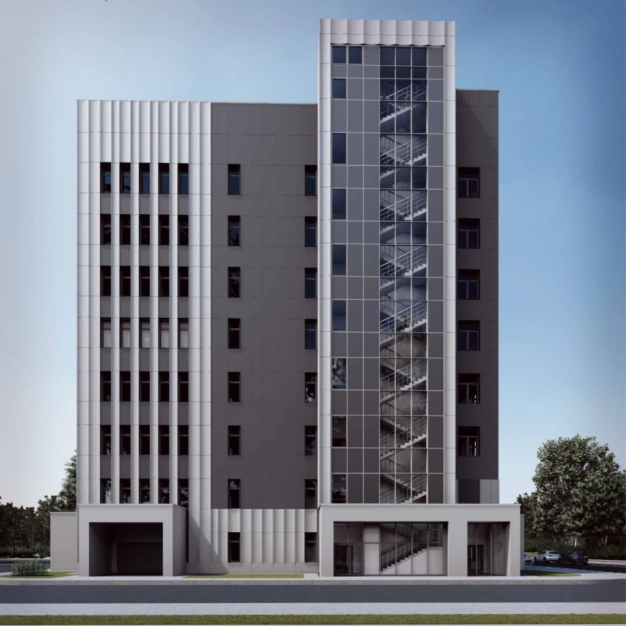 Это будет прямоугольное в плане строение с переменным количеством этажей (9-10), включая подвал. Его площадь составит более 11 тысяч кв. м.