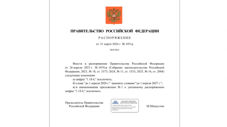 Распоряжение правительства РФ от 31 марта 2026 года. ИЛЛЮСТРАЦИЯ: Кабмин.