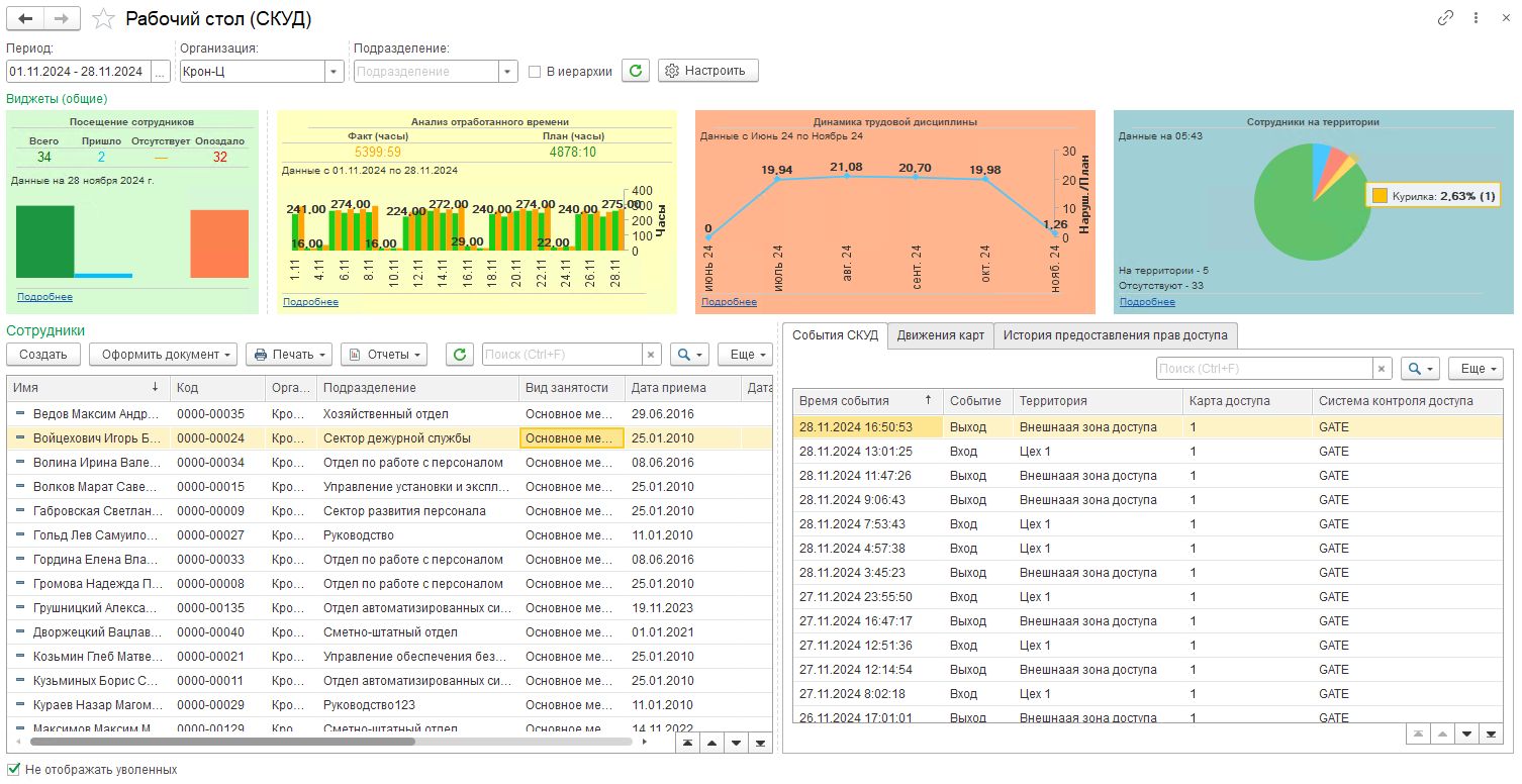 Система объединяет все СКУД предприятия и автоматически фиксирует факты прихода