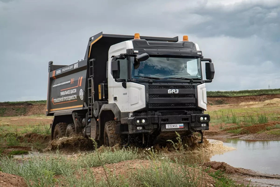 Вся линейка выпускаемой техники будет производиться с колесной формулой 6 х 6, т. е. трехосные полноприводные грузовики. В нее войдут самосвалы БАЗ S32A50 для перевозки сыпучих, навалочных и других грузов, тягачи S34A10 и S35A10 с одним и двумя спальными местами, а также грузовики с бортовой платформой S32A30 и S34A30 с короткой кабиной без спального места и с длинной кабиной с одним спальным местом. Разработкой полноприводных грузовых автомобилей БАЗа занимался инжиниринговый центр Обуховского завода.