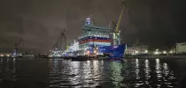 Специалисты «Балтийского завода» ОСК погрузили на борт строящегося ледокола «Чукотка» укрупненный блок секций
