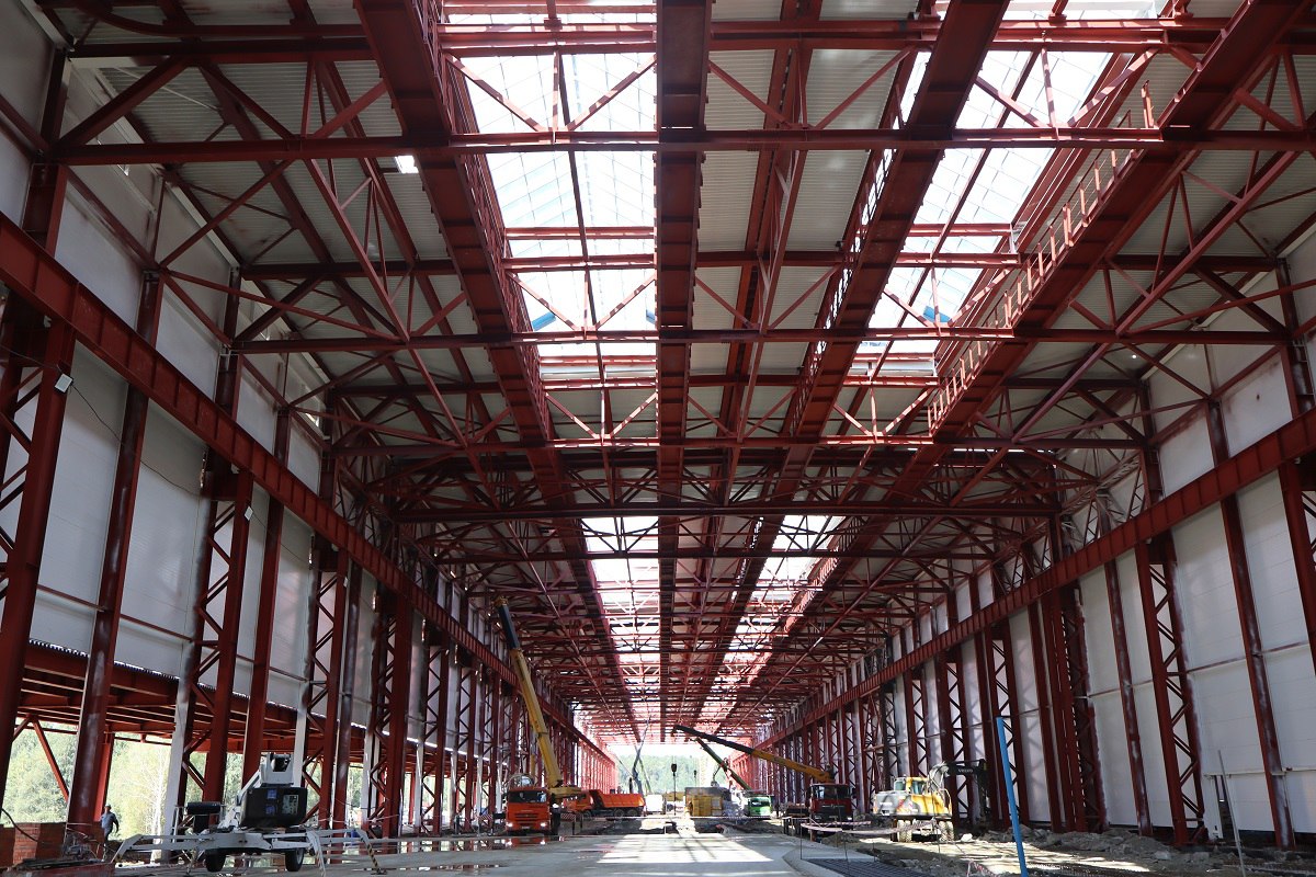 В корпусе для формирования компонентов кузова смонтировано 5 тысяч тонн металлоконструкций и залито 16 тысяч кубометров бетона. Ведется монтаж профлиста и стеновых панелей, проводится остекление зенитных фонарей.