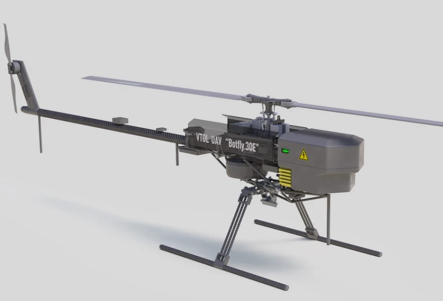 «ВТ 30Е» является многоцелевым беспилотным воздушным судном вертолетного типа одновинтовой схемы с рулевым винтом. БВС с максимальной взлетной массой 30 кг и максимальной грузоподъемностью 7 кг оснащено электрическим двигателем и аккумуляторной батареей большой емкости. Фото: radar-mms.com