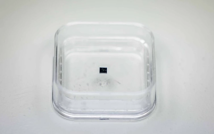 Чип сделан из кристаллического кремния. Это твердый и стабильный в широком диапазоне температур материал, не подверженный коррозии. Размер чипа – 2,98 х 2,98 мм, толщина – 0,6 мм. Это сопоставимо с рисовым зерном. С помощью разработанного устройства можно измерить разрешение томографа в диапазоне от 15 мкм до 1 мкм.