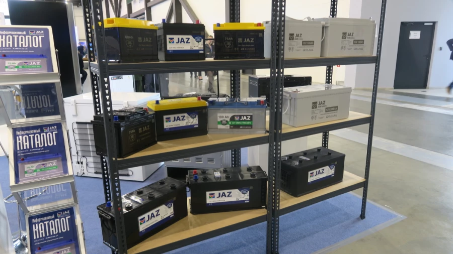 Обнаружился на форуме и стенд представителей Узбекистана, на котором кроме трикотажа и пищевой продукции выставили аккумуляторы производства компании JAZ из города Джизак.