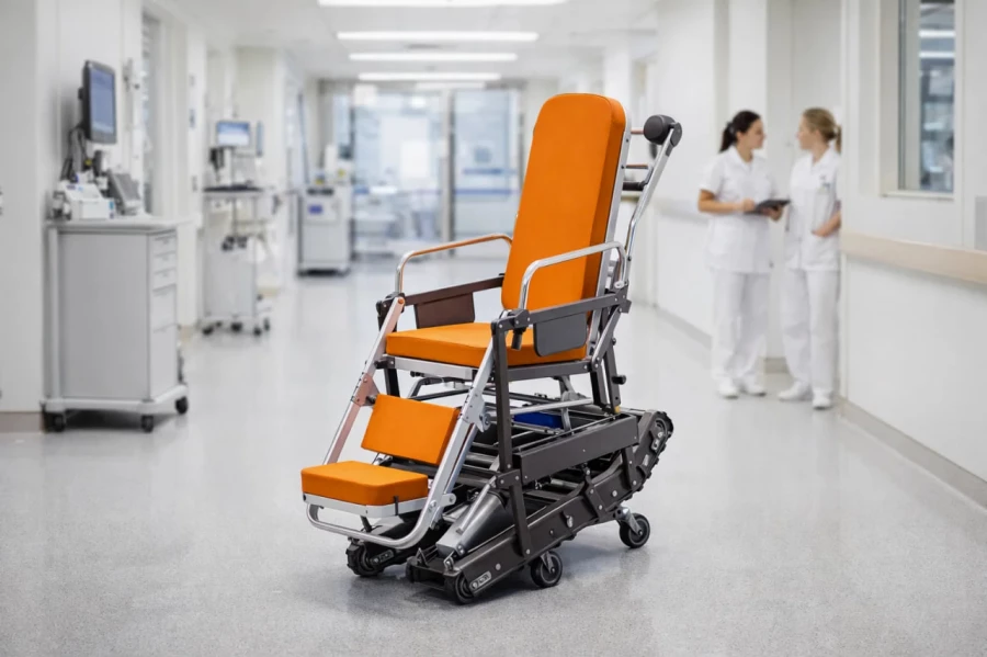 Новое изделие объединяет функции современных носилок и лестничного подъемника. Оно обеспечивает безопасную и плавную транспортировку как по ровным поверхностям, так и по ступенькам.